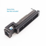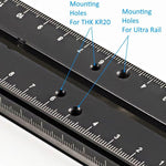 This is our 160 mm or 200 mm long double arca swiss plate (38mm). It can be used as it is or it can be used to mount our Ultra Rail and Ultra Rail Mini V2 on a tripod. It also has threaded mounting holes for THK KR20 or HIWIN KK40 rails.