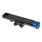 The slide rail's bottom features a standard Arca-Swiss quick-release plate structure, compatible with most tripod heads and allowing sliding adjustments for balance. For other types of tripods,a 1/4-inch threaded hole and positioning pin holes ensure compatibility and prevent unwanted movement.