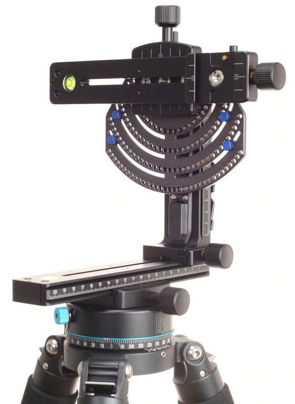 When paired with our Advanced Rotator D8II (precise click stops at 30, 15, 6, 5, 4, 3, 2.5, 2), it supports up to 700mm equivalent focal length with camera in landscape orientation, or 550mm equivalent in portrait orientation. Due to the precision of the rotators, each photo can have precise coordinates which help stitchers to quickly align the photos just like photos captured by high-end robotic heads. There will be no more stitching issues for a featureless area such as sky or blank wall.