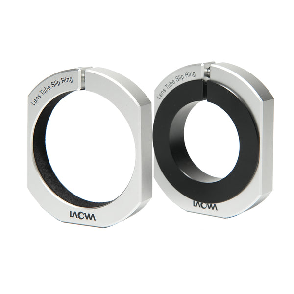 Zwei Objektiv-Halteringe mit 1/4'-Bohrung zur zusätzlichen Stabilisierung  des LAOWA AUROGON, z. B. auf einer Schiene oder einem Stativ.