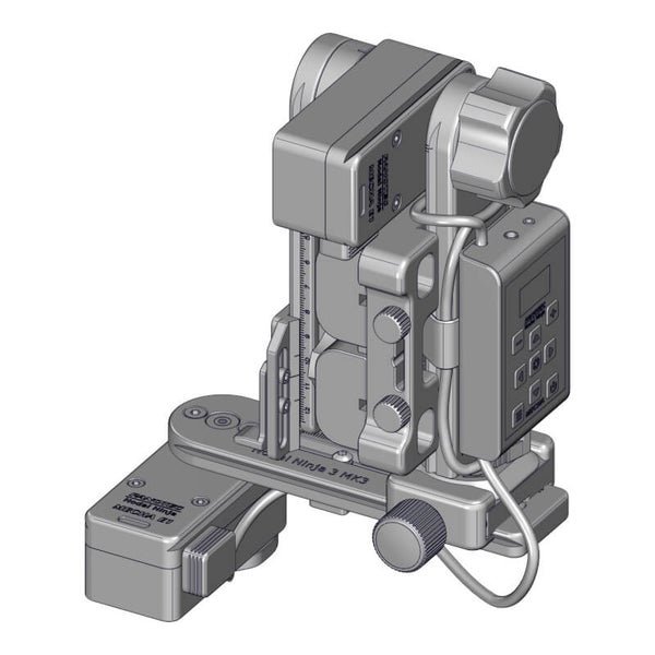 Endlich eine kompakte und erschwingliche Lösung mit einem Schwenk-Neige-Kopf mit zwei Achsen . Wir verwenden Teile von NN3 MK3 zusammen mit 2 MECHA E1-Rotatoren, einem C2-Controller und einem doppelten Batteriehalter.