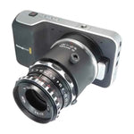 Krasnogorsk-2 and 16-SP are 16mm cameras, so the image circle of their lenses covers the sensor of Black Magic Pocket Cinema Camera with minor vignetting.